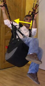 Si possible, attraper le cône de suspentage, au-dessus du twist. Pousser et tirer pour se faire pivoter.